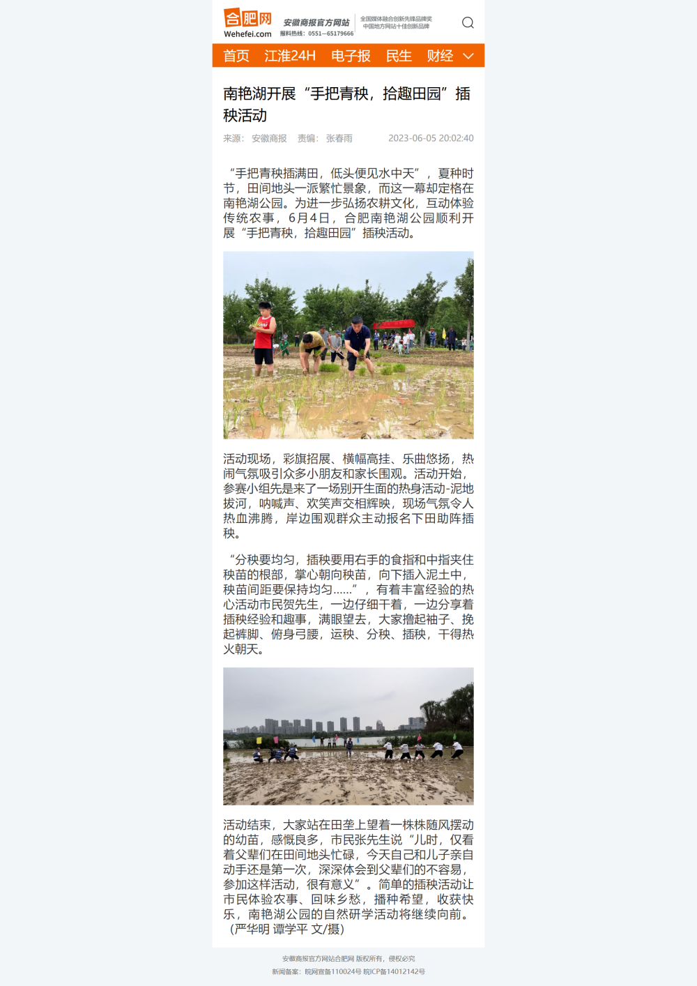 合肥網(wǎng):南艷湖開展“手把青秧,拾趣田園”插秧活動(dòng)