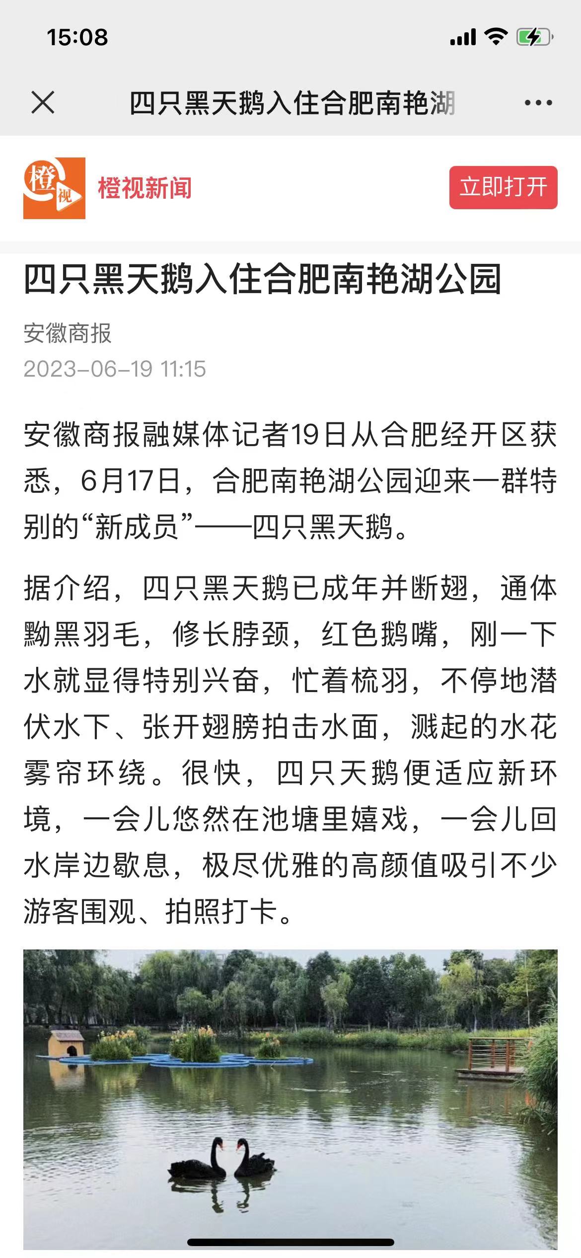 橙視新聞:四只黑天鵝入住合肥南艷湖公園