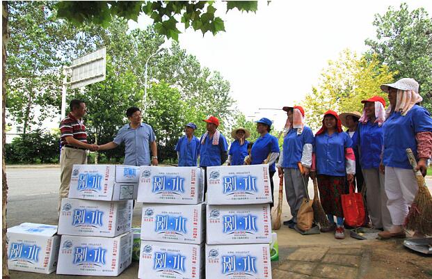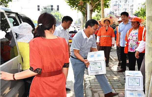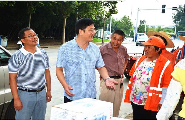 公司副總經(jīng)理劉文來(lái)親自為環(huán)衛(wèi)工人搬卸降溫飲品