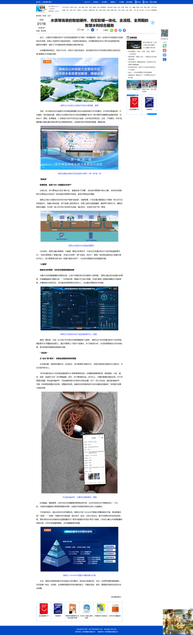 新華網(wǎng):水質(zhì)等場(chǎng)景的智能硬件,夯實(shí)軟硬一體化、全流程、全周期的智慧水利綜合服務(wù)