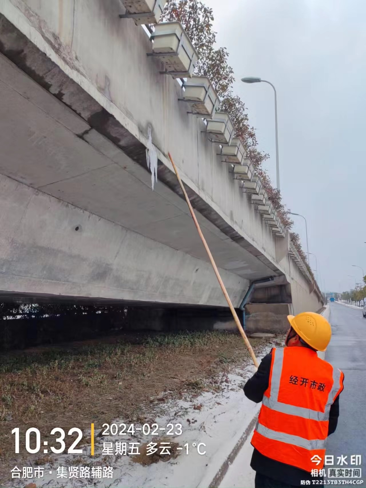 第一時間隱患排查。公司各片區(qū)市政、排水等巡查人員充分發(fā)揮 “人熟、地熟、情況熟”優(yōu)勢,對繁華集賢立交橋及方興大道沿線等重點道路橋梁、易堵易冒路段、公園入口及人行天橋等易滑地段開展巡查摸排,在易滑地段設(shè)立警示標(biāo)識,細(xì)致清除橋梁冰錐,及時消除雨雪天氣井蓋松動移位等風(fēng)險隱患,避免安全事故發(fā)生。