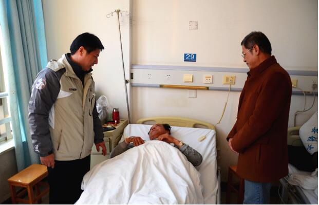 12月29日下午,公用公司黨支部書(shū)記、總經(jīng)理韋斌在公司工會(huì)主席盧燕翔及綜合部、物業(yè)部相關(guān)負(fù)責(zé)人的陪同下,來(lái)到安醫(yī)二附院骨科病房,親切慰問(wèn)在創(chuàng)建工作中受傷住院的香怡物業(yè)安保人員張海華。
