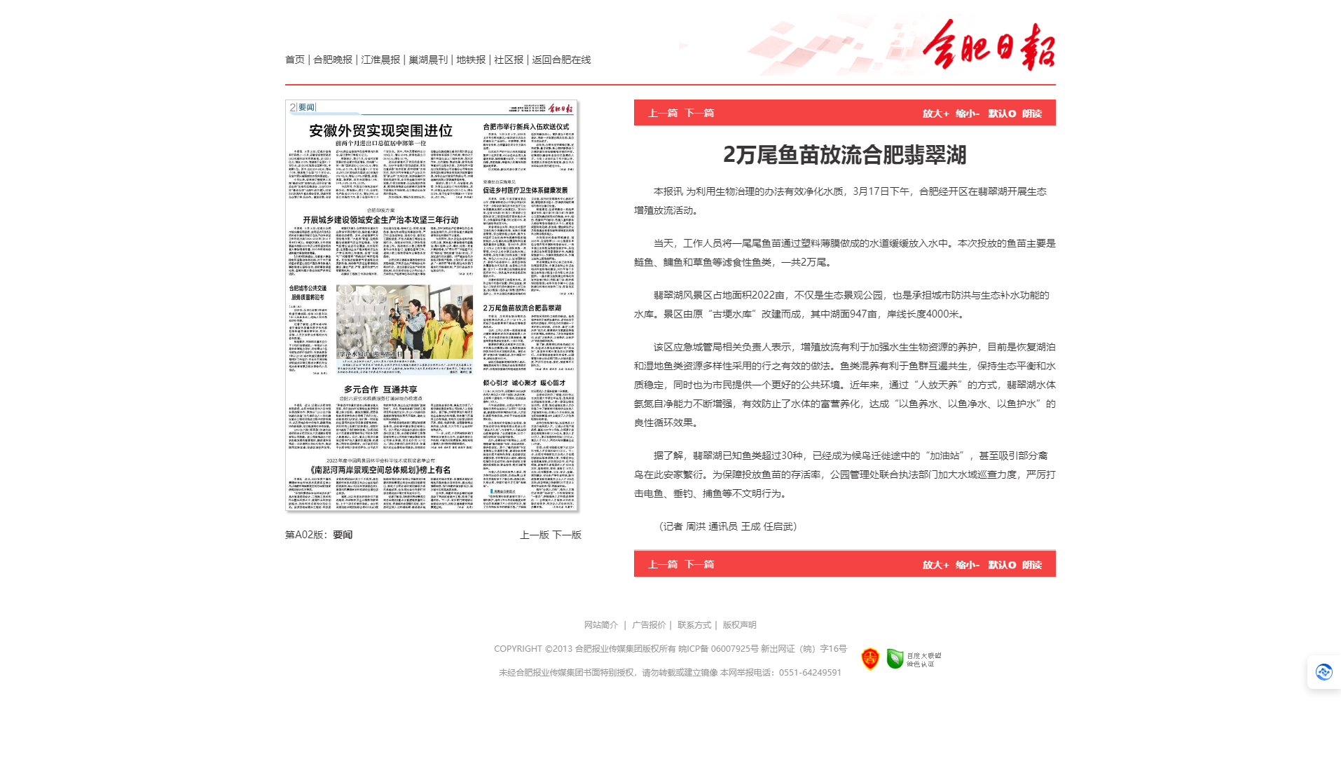 上一條:安徽日?qǐng)?bào):增殖放流! 合肥翡翠湖又添兩萬“新住客”