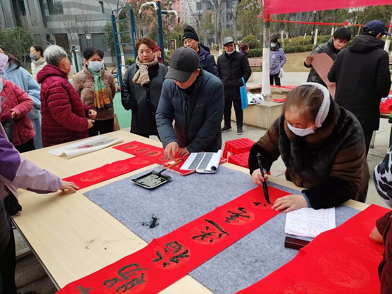 為慶祝龍年春節(jié)到來(lái),豐富居民精神文化生活,1月27日上午,近湖苑黨支部、香怡物業(yè)、福祿園居委會(huì)及德頤順老年服務(wù)中心等單位在近湖苑小區(qū)聯(lián)合開(kāi)展“書(shū)寫(xiě)幸福美好,福送萬(wàn)戶千家”新年主題活動(dòng)。
