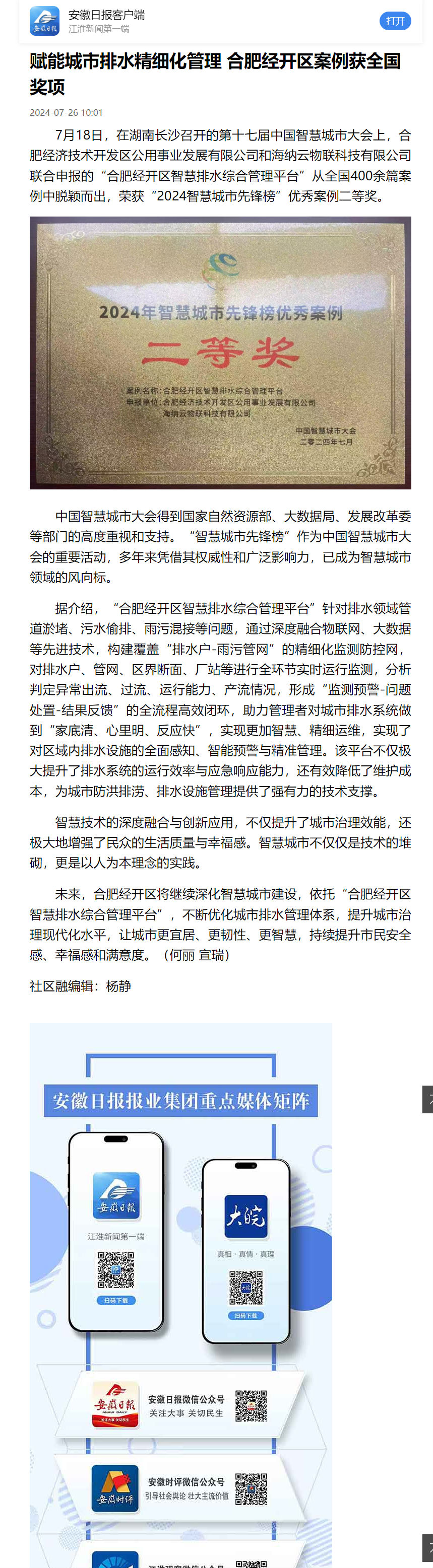 下一條:大皖新聞丨安徽網(wǎng):賦能城市排水精細(xì)化管理 合肥經(jīng)開(kāi)區(qū)案例獲全國(guó)獎(jiǎng)項(xiàng)