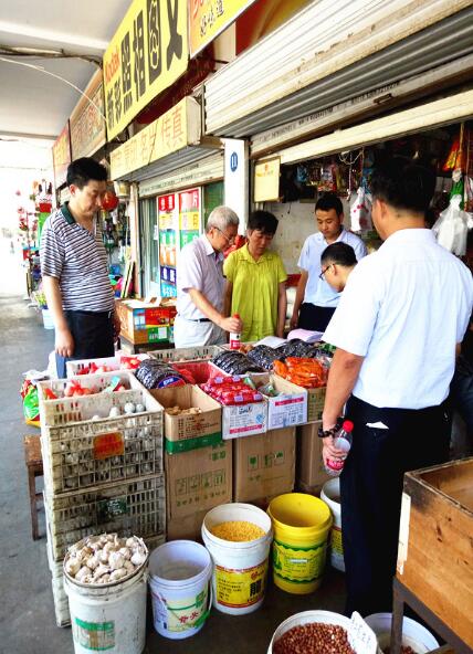 7月28日下午,合肥市食品藥品監(jiān)督管理局副局長黃川一行來到我區(qū)海恒農(nóng)貿(mào)市場,就食品安全等問題開展調(diào)研,區(qū)市場監(jiān)督局、公用公司等相關(guān)單位負責(zé)人陪同。黃川一行詳細查看了經(jīng)營戶證照配備、商品進貨臺賬記錄及肉禽類的索證索票等相關(guān)情況。他對市場扎實的基礎(chǔ)工作給予了贊賞。黃川要求,作為首批建設(shè)的農(nóng)貿(mào)市場規(guī)范化經(jīng)營管理單位,海恒農(nóng)貿(mào)市場在食品安全管理等方面要起到帶頭作用。同時,市場管理單位要做好經(jīng)營者的宣貫工作,加強市場內(nèi)標識標牌設(shè)置,營造良好的宣傳氛圍。(焦貝貝供稿))