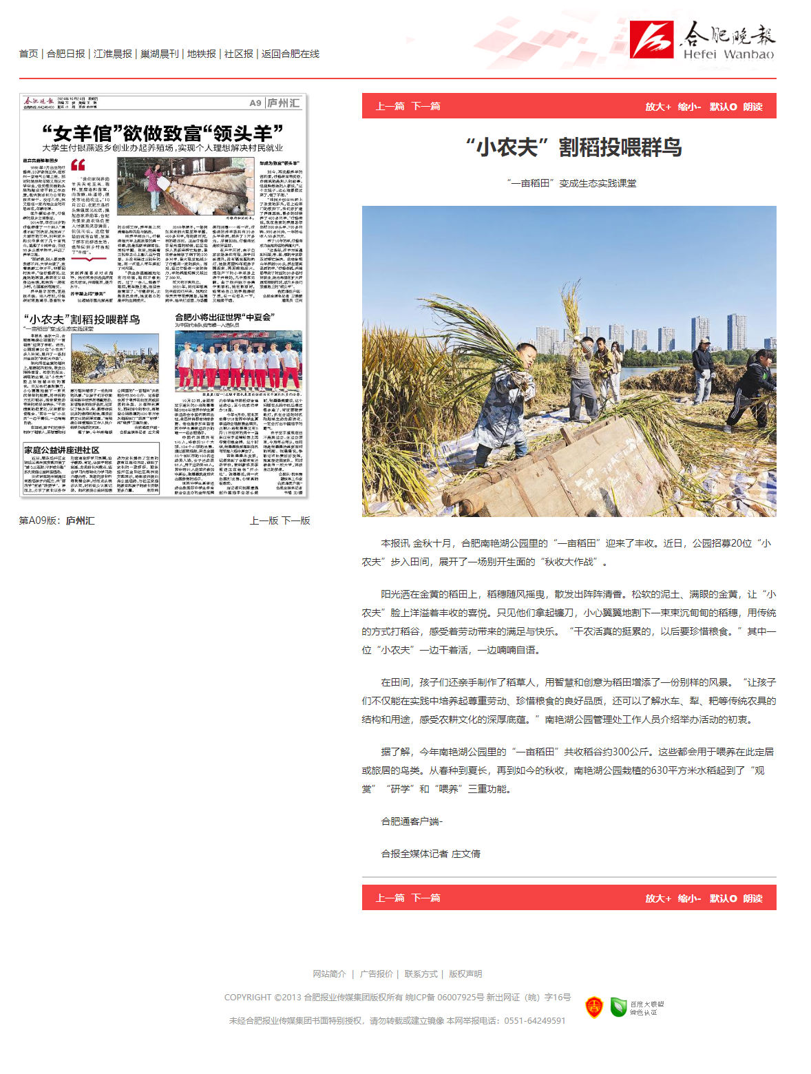 上一條:江淮晨報(bào):公園里體驗(yàn)“秋收”的喜悅