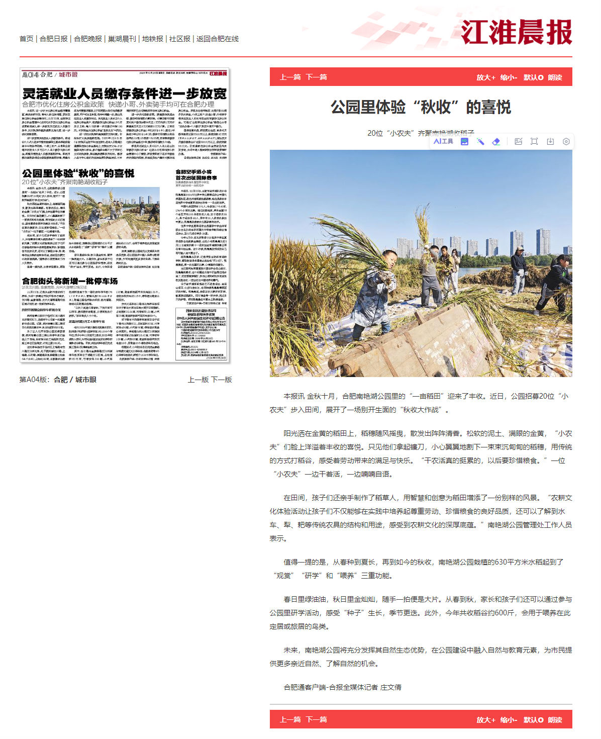江淮晨報(bào):公園里體驗(yàn)“秋收”的喜悅