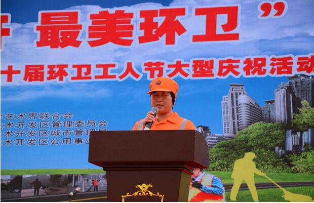 張義權首先致辭。他向多年來為了開發(fā)區(qū)的環(huán)境優(yōu)美而默默奉獻的環(huán)衛(wèi)工人表達了深深的敬意,同時也感謝社會各界一直以來對經(jīng)開區(qū)環(huán)衛(wèi)事業(yè)、環(huán)衛(wèi)工人給予的關心和支持,并預祝此次慶祝活動圓滿成功。
