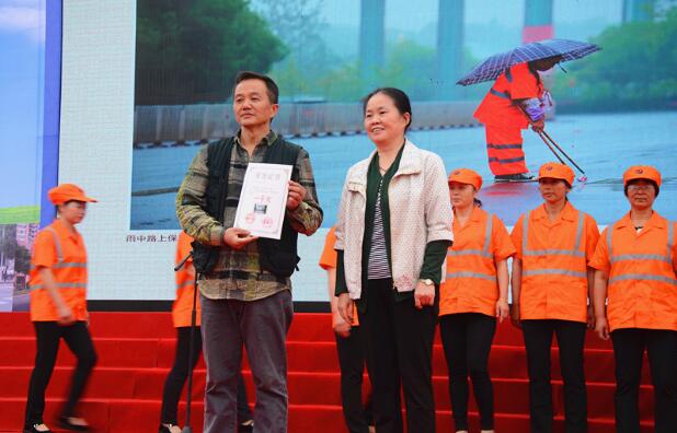 環(huán)衛(wèi)攝影大賽的頒獎是此次活動的一項重要環(huán)節(jié)。此次以環(huán)衛(wèi)事業(yè)為題材的攝影大賽自2015年9月13日啟動以來,至10月12日截稿日,先后收到百余名攝影家共1500余幅作品,經(jīng)過省文聯(lián)專家組認真評審,最終有70幅作品脫穎而出,其中一等獎1名,二等獎3名,三等獎6名,優(yōu)秀獎60名,這些作品也專門制作了畫板在活動現(xiàn)場周邊擺放,引來眾多觀賞。