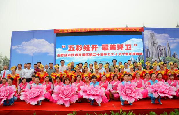 10月25日,在環(huán)衛(wèi)工人節(jié)即將到來之際,合肥經(jīng)開區(qū)“第20屆環(huán)衛(wèi)工人節(jié)慶?;顒印痹诨請@世紀廣場隆重舉辦。此次慶祝活動是由合經(jīng)區(qū)管委會、安徽省文聯(lián)主辦,合經(jīng)區(qū)城管局、合經(jīng)區(qū)公用事業(yè)發(fā)展公司承辦。合經(jīng)區(qū)工委委員、管委會副主任孫余洲,工委委員李應天,省文聯(lián)副巡視員江楓,省攝影家協(xié)會主席陳志勇,省音樂家協(xié)會副主席謝林義,區(qū)城管局局長張義權,公用公司總經(jīng)理韋斌及各相關單位領導到場,與現(xiàn)場三百余名開發(fā)區(qū)環(huán)衛(wèi)工人代表、省文聯(lián)藝術家共同參加此次活動。