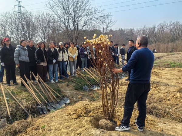 本次活動以“植樹添綠、共建生態(tài)文明,攜手同行、共創(chuàng)美好家園” 為主題,于 3 月 10 日上午在湯口路苗圃順利開展。活動當(dāng)天,合肥工業(yè)大學(xué)建筑與藝術(shù)學(xué)院的師生代表與香怡園林公司支部全體黨員、積極分子及部分群眾代表齊聚湯口路苗圃基地,共同參與義務(wù)植樹。大家齊心協(xié)力,揮鍬鏟土、扶苗填坑、澆水灌溉,親手種下一株株樹苗,為大地增添了新綠。