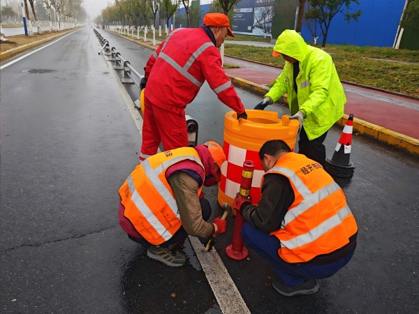 強化警示標(biāo)識。更換老舊護欄反光貼10塊,新增反光防撞桶1個、橙色彈力柱1個,加裝反光貼30塊,提升雨霧天氣設(shè)施辨識度;規(guī)范施工管理。施工人員著反光服作業(yè),使用專業(yè)設(shè)備檢修護欄,修復(fù)路面坑洞,同步更新交通標(biāo)志標(biāo)線,確保設(shè)施安裝合規(guī)。