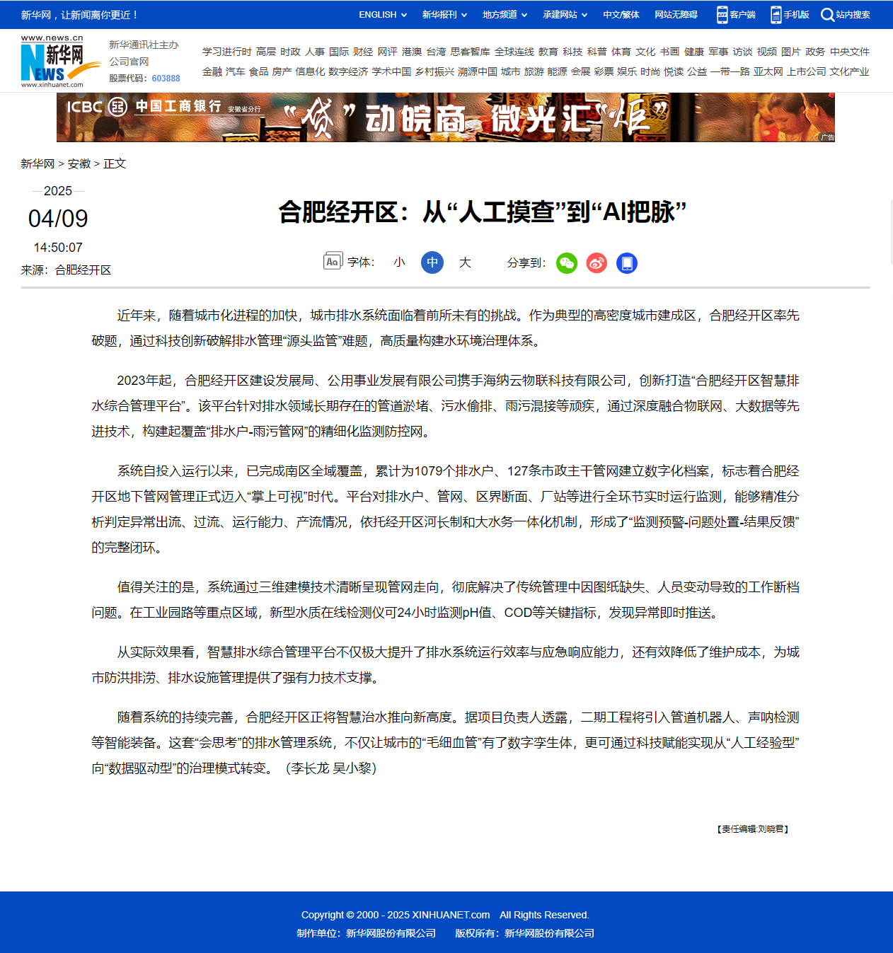 下一條:合肥在線:合肥經(jīng)開區(qū)運(yùn)用數(shù)字技術(shù)構(gòu)建智慧排水管理體系