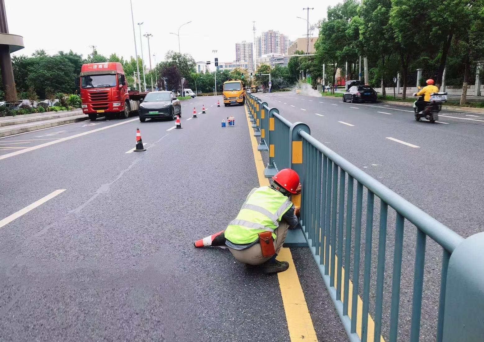 規(guī)范施工,便民利民。為減少施工對(duì)市民出行的影響,刷漆工作集中在早晚交通高峰時(shí)段之外開(kāi)展。施工過(guò)程中,工作人員嚴(yán)格遵循標(biāo)準(zhǔn)化流程,選用耐磨、抗腐蝕的專業(yè)涂料,確保刷漆后護(hù)欄更加美觀耐用;同時(shí)在施工時(shí)按規(guī)定設(shè)置反光警示錐、安全提示牌,全力保障施工期間道路通行秩序與施工人員安全。