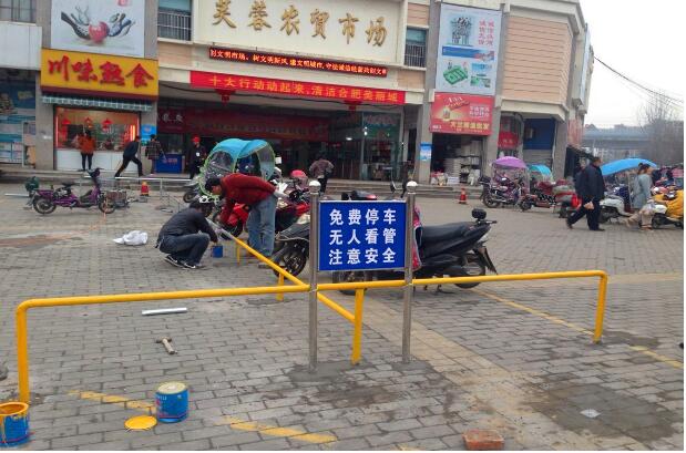 匯林園農(nóng)貿(mào)。市場北門撒水坡劃線,規(guī)范非機動車停放,農(nóng)貿(mào)市場雜物清理2車,每日攤位伸舌清理,市場照明燈泡更換15個。