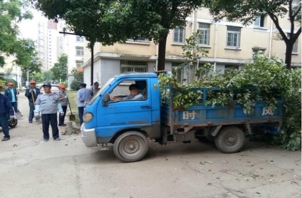 清理小區(qū)內(nèi)斷枝枯樹及堆放雜物