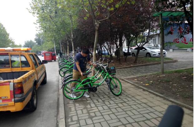 整理路邊隨意停放的共享單車