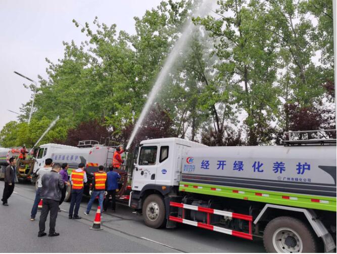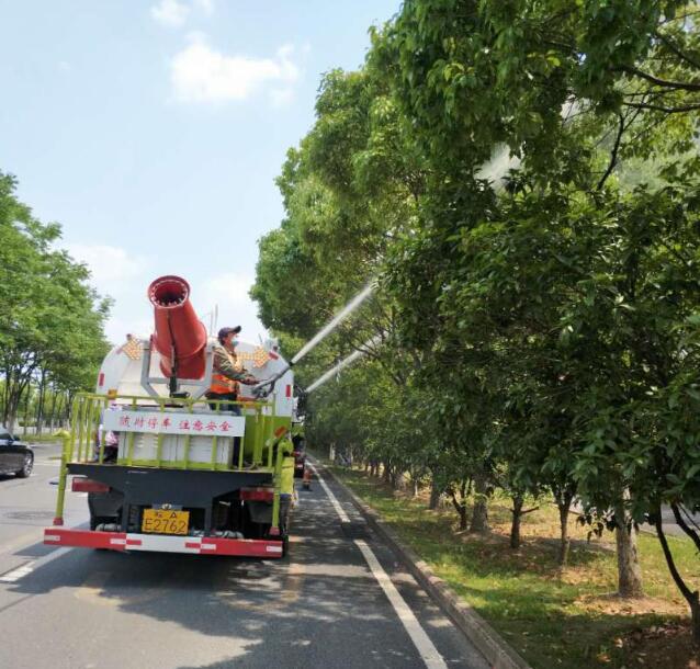 干燥、少雨、大風(fēng)是形成飛絮滿天飛的關(guān)鍵因素。鑒于此,公用公司組織人員和力量,提前對道路周邊的楊樹進(jìn)行疏枝,通過短截和修剪,減少楊絮的形成;同步加大機械化投入,飄絮期間,抽調(diào)8名駕駛員、安排7臺高壓槍,對校園及楊樹密集區(qū)域道路綠化開展錯峰、循環(huán)高壓沖洗噴淋等作業(yè),通過霧狀高壓噴射,將絮棉沖落至地面,再由洗掃車或環(huán)衛(wèi)工人及時清掃,從而對飛絮進(jìn)行壓制。通過打出一整套“組合拳”,有效降低楊柳絮的“存在感”。