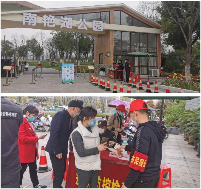 為保障南艷湖公園確保防疫工作落到實(shí)處。開園前,南艷湖公園管理處提前一周謀劃、籌備開園預(yù)案。開園后,南艷湖管理處采取了一系列“嚴(yán)防疫+人性化”舉措,引導(dǎo)游客安全有序游園。為保障人員管控到位,南艷湖公園僅開放東大門、西大門,入口改為標(biāo)準(zhǔn)型一進(jìn)一出。此外,南艷湖公園入口處還設(shè)置了體溫預(yù)檢處,人員出示安康碼、正確佩戴口罩之后方可入園。此外,各入口處還配備消毒液、口罩、手套、防目鏡、測溫槍等防疫物資,出入口處還設(shè)置了廢棄口罩丟棄處和臨時(shí)隔離點(diǎn),嚴(yán)格落實(shí)各項(xiàng)疫情防控措施,保障安全游玩。