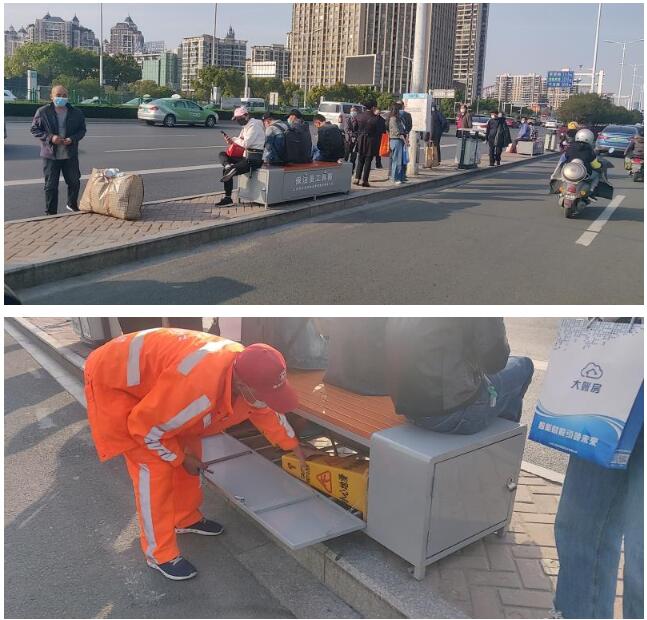 “工作累了之后可以停下找到座位坐一坐,休息幾分鐘,繼續(xù)工作了。”3月25日,在經(jīng)開區(qū)明珠廣場北公交站,58歲的環(huán)衛(wèi)工張業(yè)領坐在新安裝上的環(huán)衛(wèi)保潔箱上,他說,負責的片區(qū)內只要哪里有一點垃圾,就會及時清掃干凈,腳底的這條路一天不知道要走多少趟,以往走累時只能暫時靠在路邊的石頭上或者是天橋階梯上坐一會兒,有了環(huán)衛(wèi)保潔箱之后,可以坐在上面,比以前方便多了。