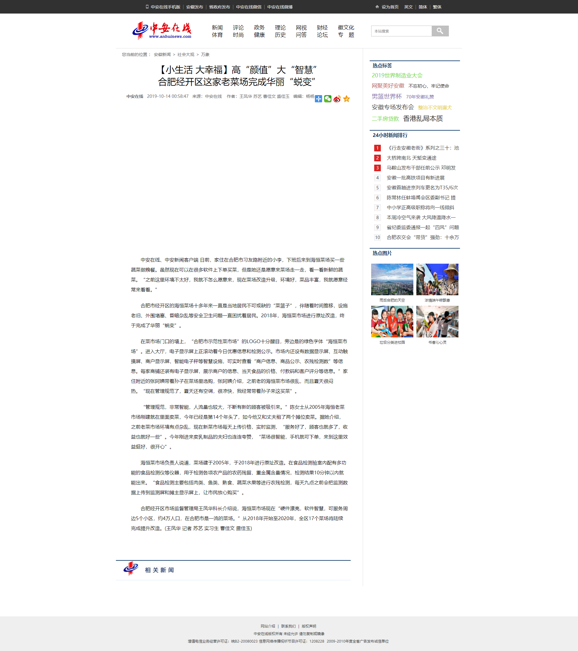 中安在線:高“顏值”大“智慧” 合肥經(jīng)開區(qū)這家老菜場完成華麗“蛻變”:http://ah.anhuinews.com/system/2019/10/14/008251528.shtml