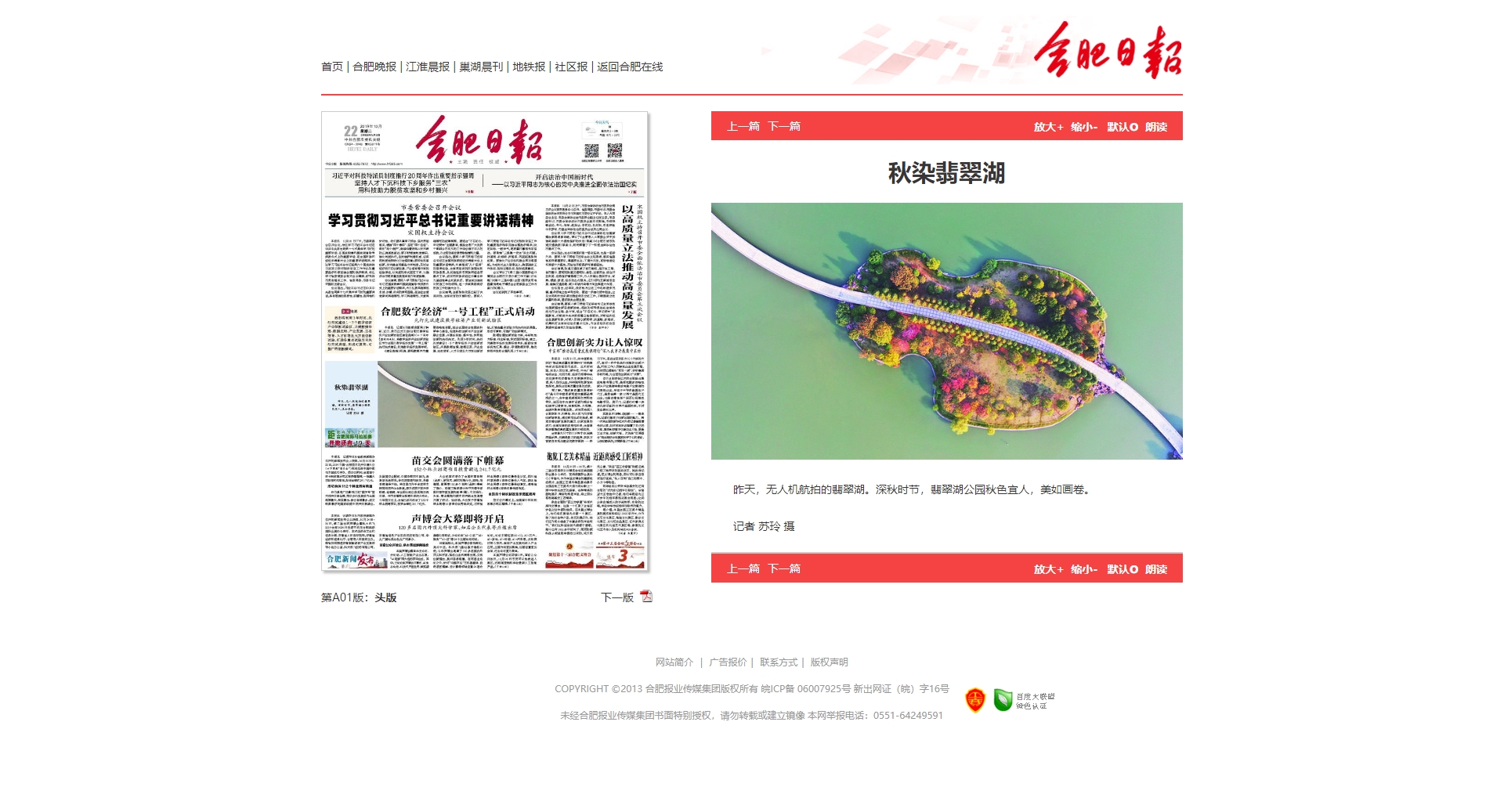 合肥日?qǐng)?bào)10月22日:秋然翡翠湖:http://newspaper.hf365.com/hfrb/pc/content/201910/22/content_116559.html