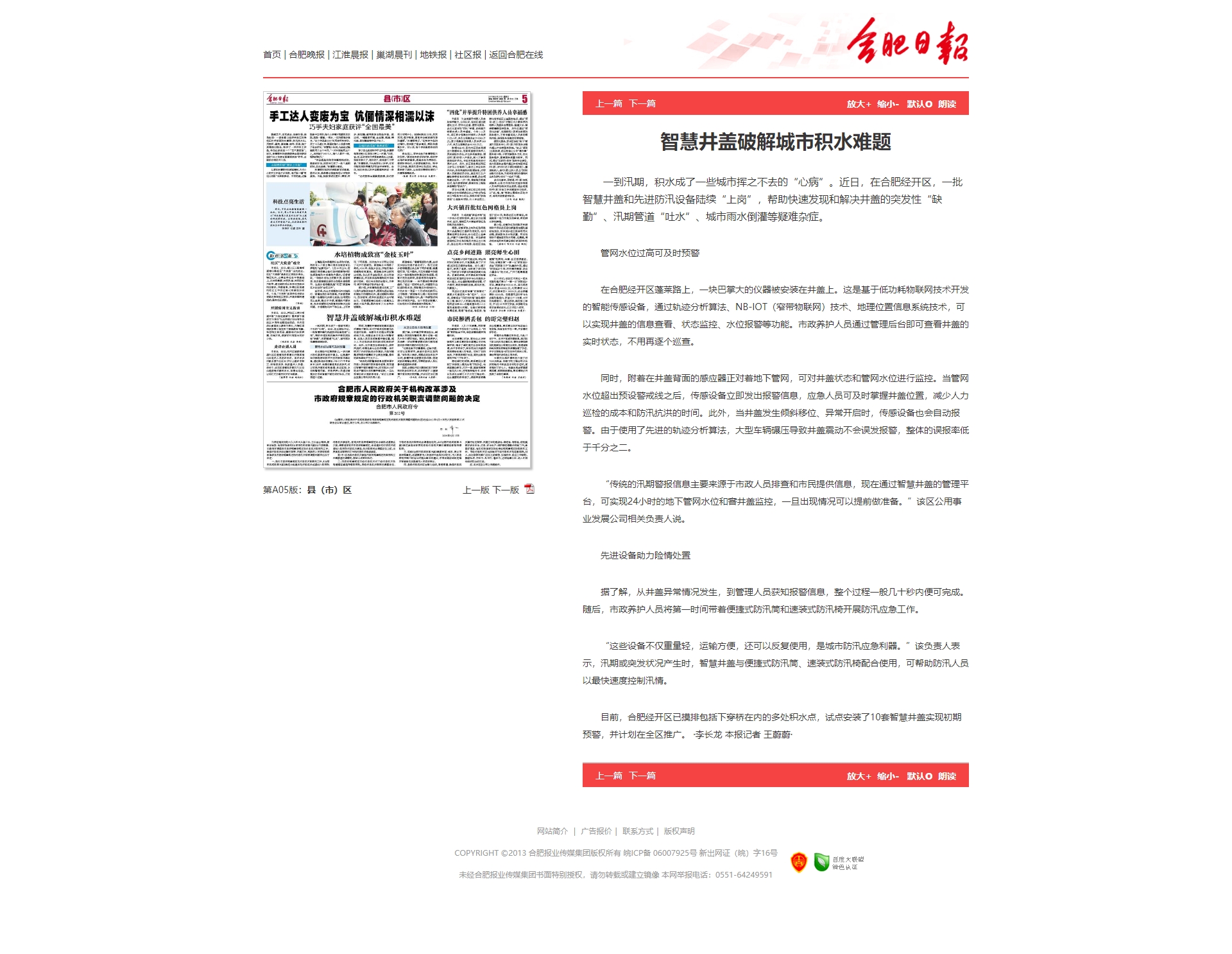 合肥日?qǐng)?bào)5月24日第5版:智慧井蓋破解城市積水難題: