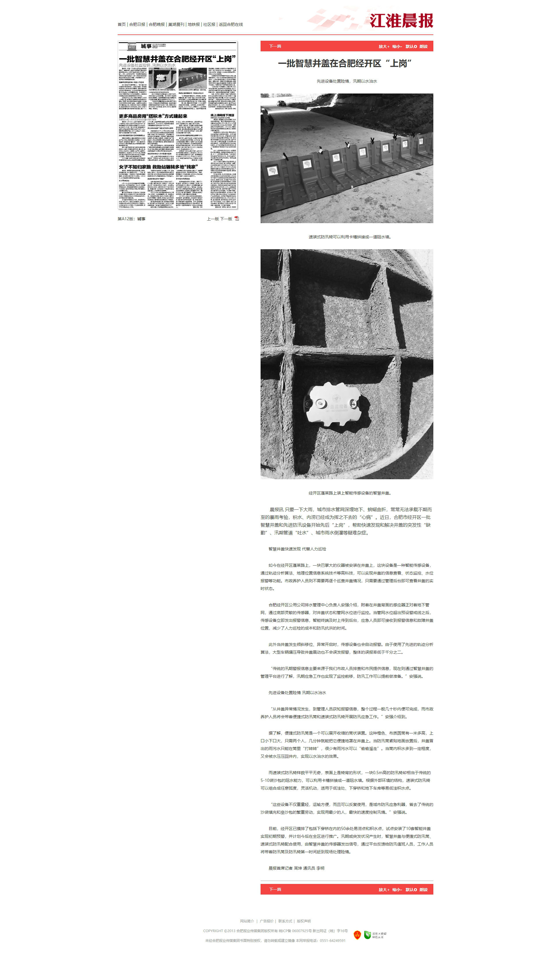 江淮晨報(bào)5月24日第12版:一批智慧井蓋在合肥經(jīng)開區(qū)“上崗”