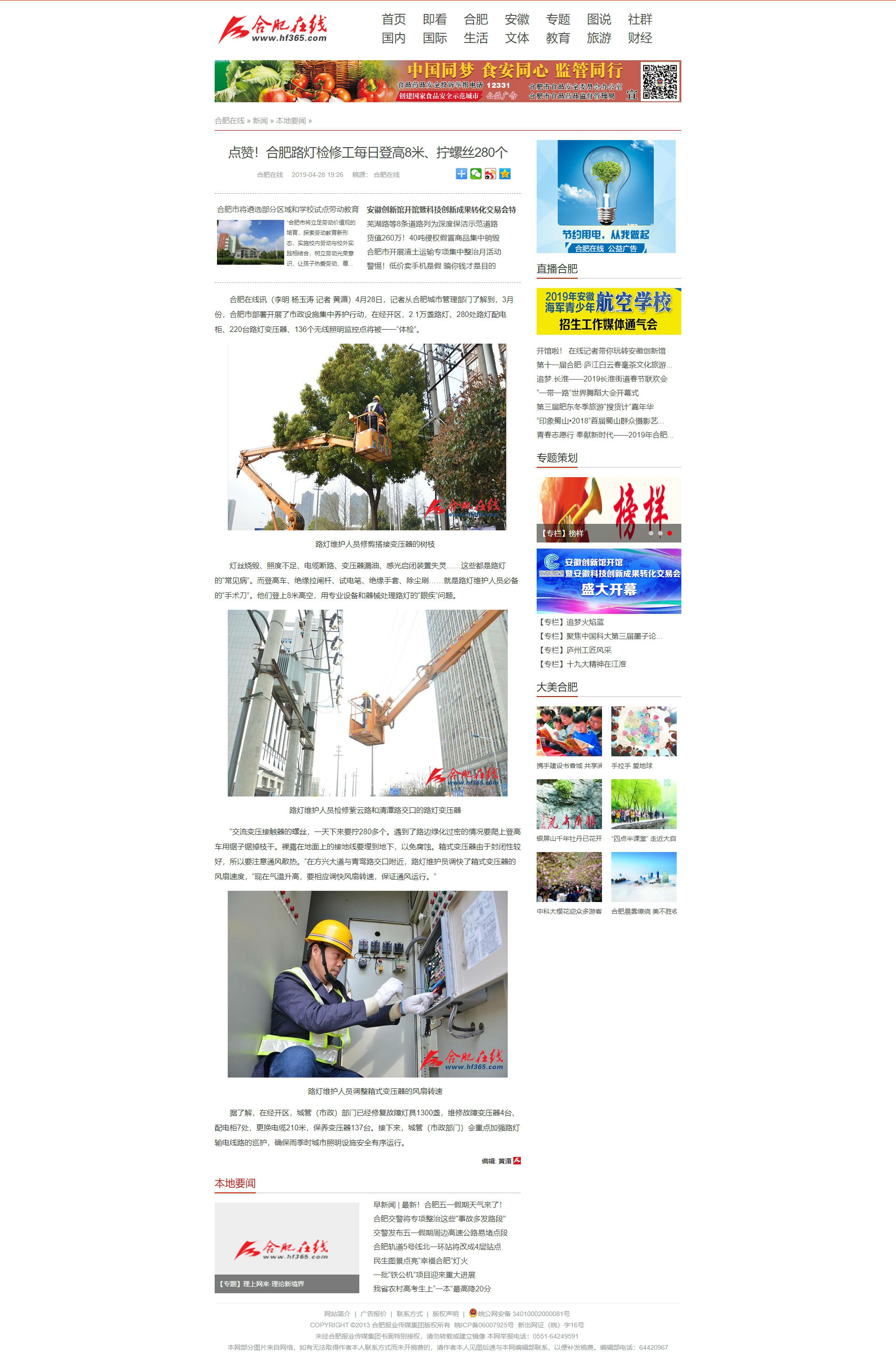 安徽網(wǎng):“燈泡俠”登高8米 維修合肥1300盞路燈:http://www.ahwang.cn/zbah/20190428/1870755.shtml