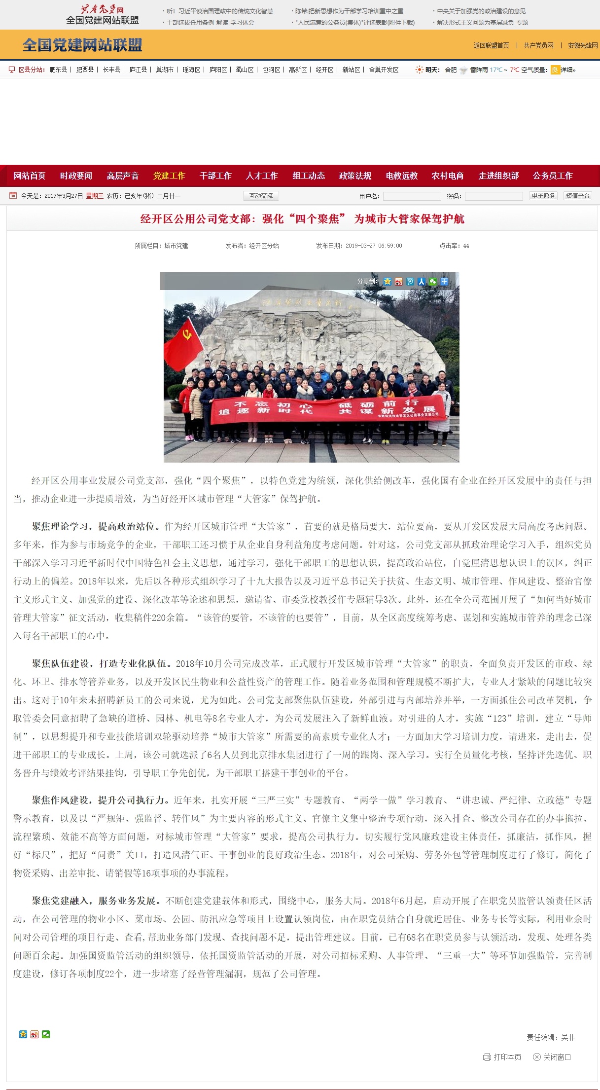 合肥先鋒網(wǎng):經(jīng)開(kāi)區(qū)公用公司黨支部:強(qiáng)化“四個(gè)聚焦” 為城市大管家保駕護(hù)航-鏈接