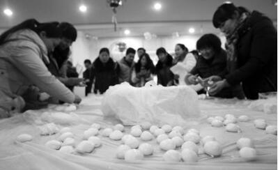 恰逢中國傳統(tǒng)佳節(jié)--元宵節(jié),商報君特地準備了熱騰騰的元宵,讓大伙來一場包元宵比賽,在最短的時間內(nèi)看哪一隊能夠獲得冠軍。這邊有志愿者緊張計時,那邊煮沸的開水等待元宵下鍋,兩邊的桌子上已經(jīng)備好了碗筷,就等著元宵出鍋給大伙品嘗啦。今年72歲的李代玉和70歲的范國健兩位孤寡老人也受邀來到活動現(xiàn)場。